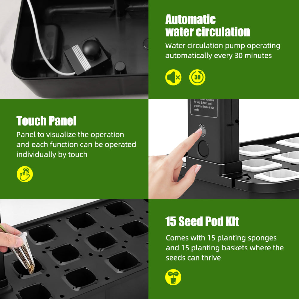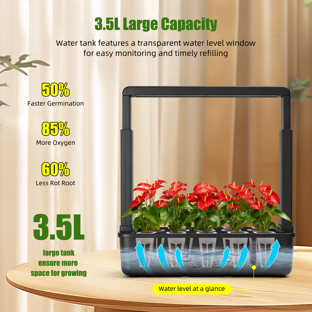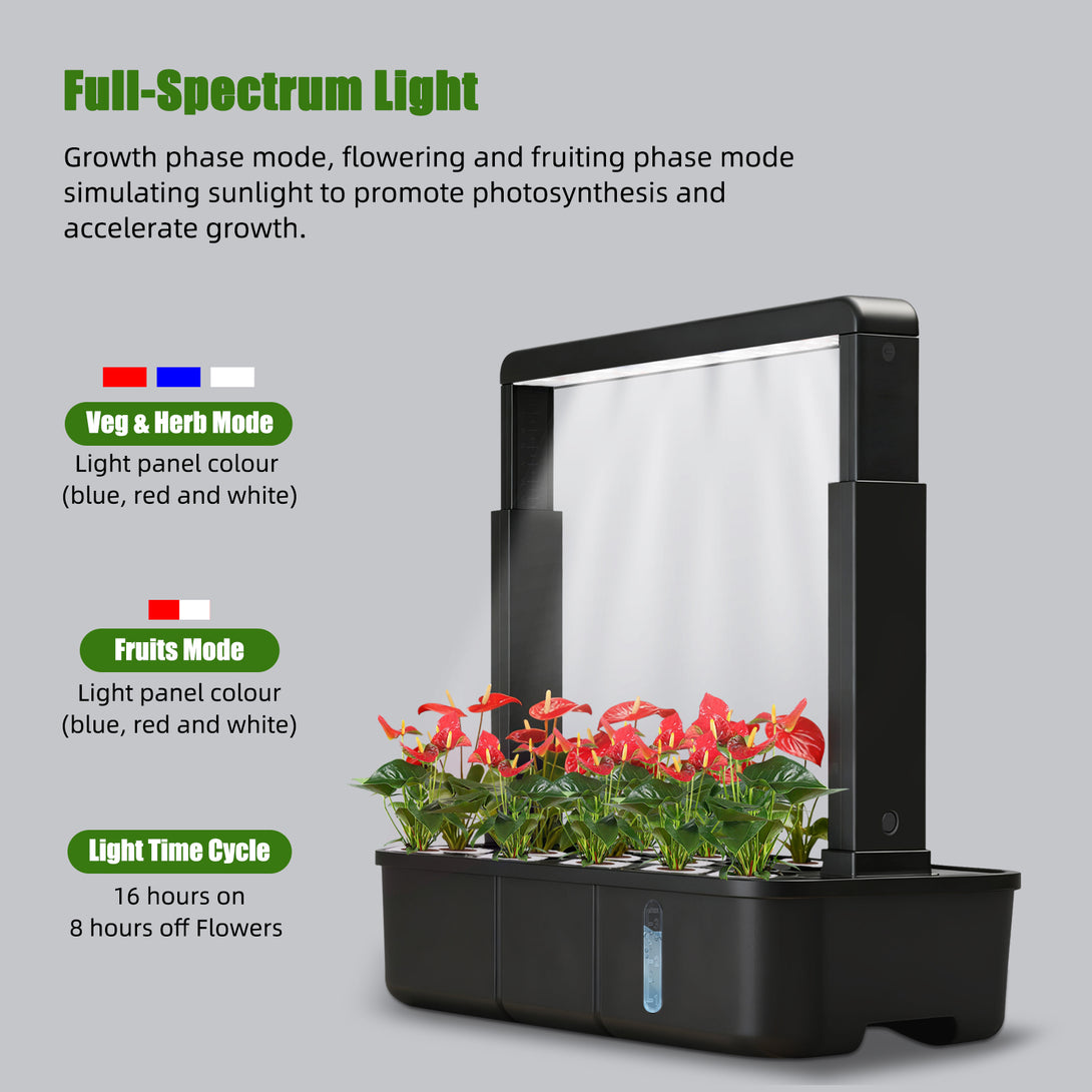 This upgraded full-spectrum LED light delivers consistent brightness that supports your plants through every stage—from seedlings to fruiting—making it a reliable sunlight alternative for homes with limited natural light. With separate modes for leafy greens and fruiting plants, it creates a balanced environment that prevents the common issues of weak stems and slow growth. The built-in 16-hour automatic cycle takes care of the timing for you, offering a hassle-free indoor gardening experience for busy households.